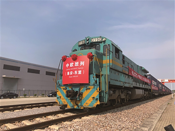 5月26日,一列满载纺织机械、光伏产品和电子产品的班列驶出江苏海安物流基地,开往越南河内。“这是长三角地区首次开行至东盟十国的国际货运班列,共搭载70个标准集装箱,全程运行时间预计为5天,较先前全程水运运行时效大大提高。”中铁南京货运中心工作人员说。
