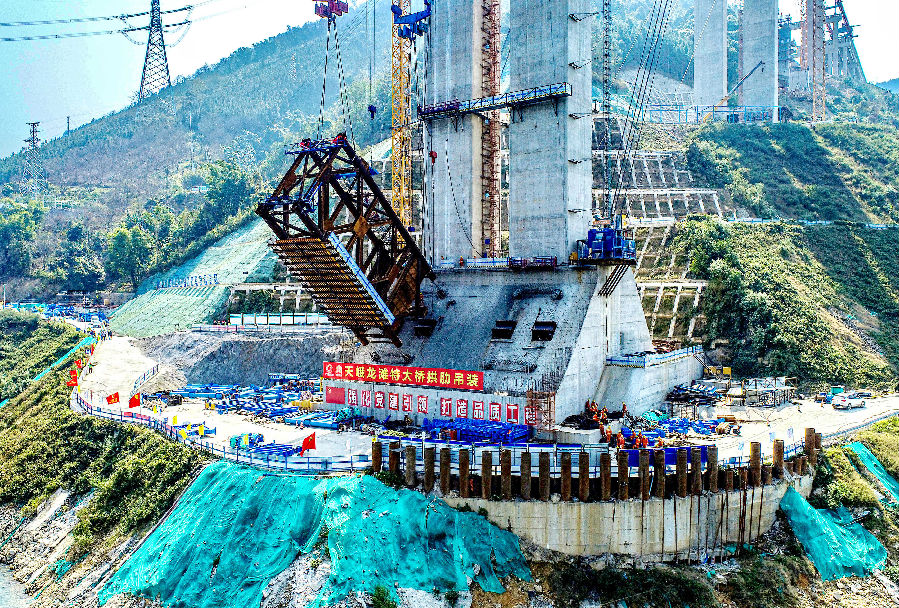 广西交通投资集团投资建设的在建世界最大跨径拱桥——天峨龙滩特大桥顺利完成首节段拱肋吊装