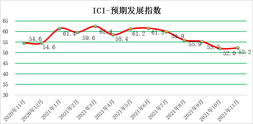 11月份ICI制造业指数为51.3%,环比回升4.5个百分点,重回荣枯线之上,再次位于扩张区间。11月份,中国制造业采购经理指数(PMI)为50.1%,比上月上升0.9个百分点,位于临界点以上,制造业重回扩张区间。11月份ICI制造业指数和PMI均有所回升,大体趋势一致。