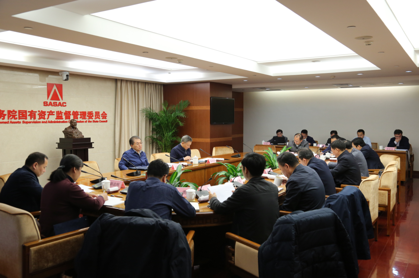 12月17日,受国务院国有企业改革领导小组办公室主任、国资委党委书记、主任郝鹏委托,领导小组办公室副主任、国资委副主任翁杰明主持召开专题会议,传达学习中央经济工作会议精神,围绕制订国企改革三年行动方案,听取国务院国企改革领导小组各成员单位关于国企改革下一步工作思路和建议。国资委党委委员、秘书长彭华岗出席会议。