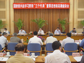 座谈会由国资委党委委员、副主任王瑞祥同志主持,国资委党委委员、副主任吴晓华、王勇、国资委党委委员、纪委书记黄丹华等出席会议。中国航天科工集团公司、中国石油化工集团公司、上海宝钢集团公司、中国东方航空集团公司、中国铁路工程总公司、中国唱片总公司等企业主要负责同志在会上谈了学习体会,国资委机关有关厅局主要负责同志和28家中央企业主要负责同志参加了座谈会。