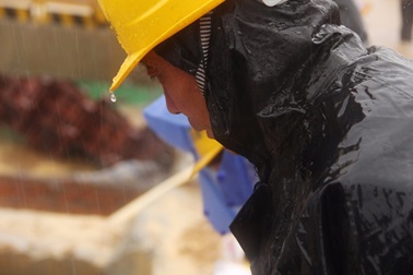 7月5日上午9点,武汉蔡甸消泗出现险情,水位已淹没桥面。中建幕墙有限公司15分钟组织了一支120人的抗洪队伍。有的人没有分到雨衣、雨靴,雨水、汗水、泥水浸透了他们的衣背。沙石在大家的密切配合下一袋袋迅速填充。截至记者发稿时,中国建筑累计出动救援力量5000余人次,动用自卸车、挖掘机、铲车等大型机械设备490余台。