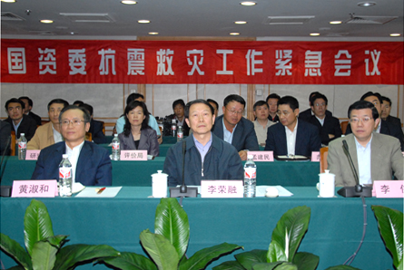 李荣融在会上介绍,灾情发生后,国资委立即采取措施摸清企业受灾情况,号召和组织中央企业积极投入抗震救灾。国资委建立了24小时委领导待班的值班制度,随时了解中央企业一线救灾情况,加强协调,组织力量对受灾重点企业进行救援。13号上午,国资委发出了关于中央企业做好抗震救灾工作的紧急通知。中央企业启动了相应的应急预案,负责人亲自指挥,不惜代价,全力投入抗震救灾,反应迅速、措施得力。广大中央企业踊跃捐款,截至5月14日13时,中央企业捐款金额合计超过1.85亿元。