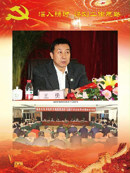 为深入学习贯彻党的十七届六中全会精神,研讨进一步落实“十二五”时期中央企业改革发展总体思路和国资监管、国企发展“两新目标”,以及机关建设规划纲要的思路和措施,同时梳理2011年的工作,研究2012年的工作,按照委国资委党委的部署,11月15日至12月9日,国资委先后举办了4期学习贯彻六中全会精神理论培训班。国资委主任、党委书记王勇亲自为参加培训班的全体同志作动员报告,并在第一期班暨党委中心组学习会上作了总结讲话。在京的国资委党委委员、副秘书长,机关厅局长、监事会各办事处主任和全体党员干部以及直属事业单位、管理局系统党政领导班子成员、直管协会和部分京外企业在京单位党组织负责同志共计1100余人参加了培训,监事会主席单独进行了培训。