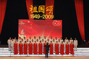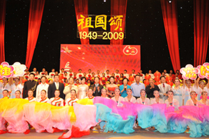 金秋大地,层林尽染。9月28日,国资委在全国政协礼堂隆重举行委直属机关庆祝新中国成立60周年文艺汇演----《祖国颂》。中央国家机关工委副书记俞贵麟,委领导李荣融、黄丹华、金阳、孟建民、贾福兴、李寿生,部分监事会主席、二线领导、直管协会部级领导同志及机关厅局、直属单位、直管协会干部职工共1100余人观看了汇演。