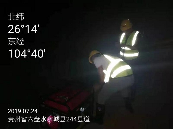 南方电网贵州电网公司成立工作组赶赴现场,贵州六盘水供电局立即启动社会突发事件供电保障Ⅳ级响应。截至7月24日18:00,南方电网共出动抢修救援人员68人,车辆8台次,10米灯塔4台,应急发电机6台,发电车3台。