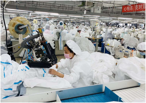 大战面前践行初心使命,大考之中发挥供应链体系优势。国机集团旗下重要成员苏美达是江苏省进出口行业的标杆企业,年进出口总额超70亿美元,下属轻纺公司专注纺织服装领域,其专业能力、产业链整合优势和团队战斗力,为创思特紧急转产、加速扩产打下了良好基础。
