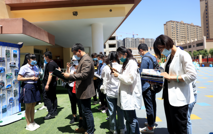 5月18日上午,记者采访团一行前往中国华电投入900万元援建的喀什市东城幼儿园,与幼儿园老师面对面交流,了解孩子的学习生活情况。墙上老师、孩子的手绘图画、不同特色的主题班吸引了记者们的眼球。该幼儿园2019年正式启用,建设面积4000平方米,共有12个教学班、功能室,可供近400名儿童入园就读。
