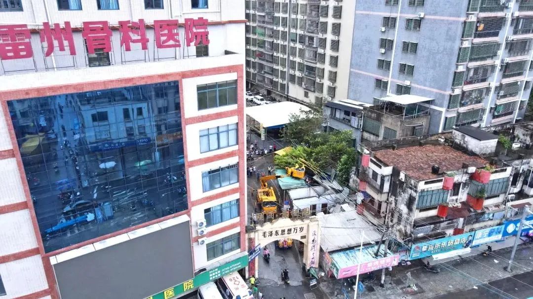 电力抢修人员采用带电作业的方式,修补湛江雷州骨科医院旁的线路