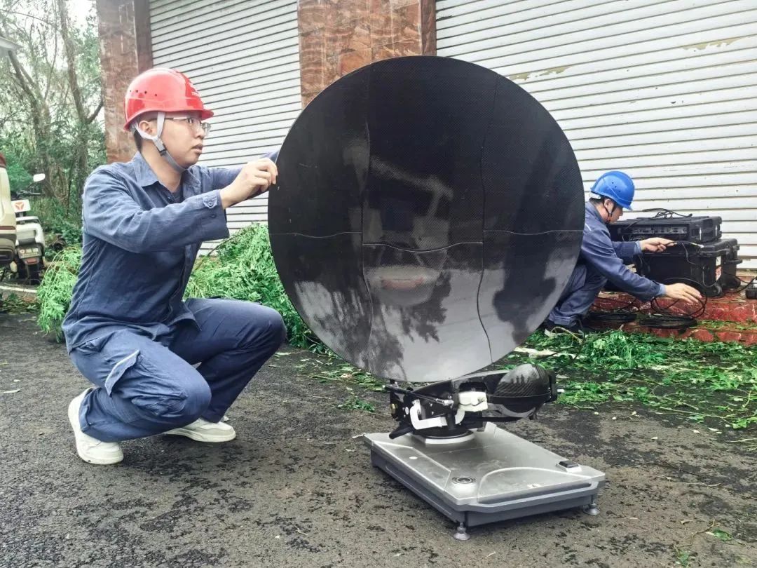 电力抢修人员正在调试KU卫星便携站