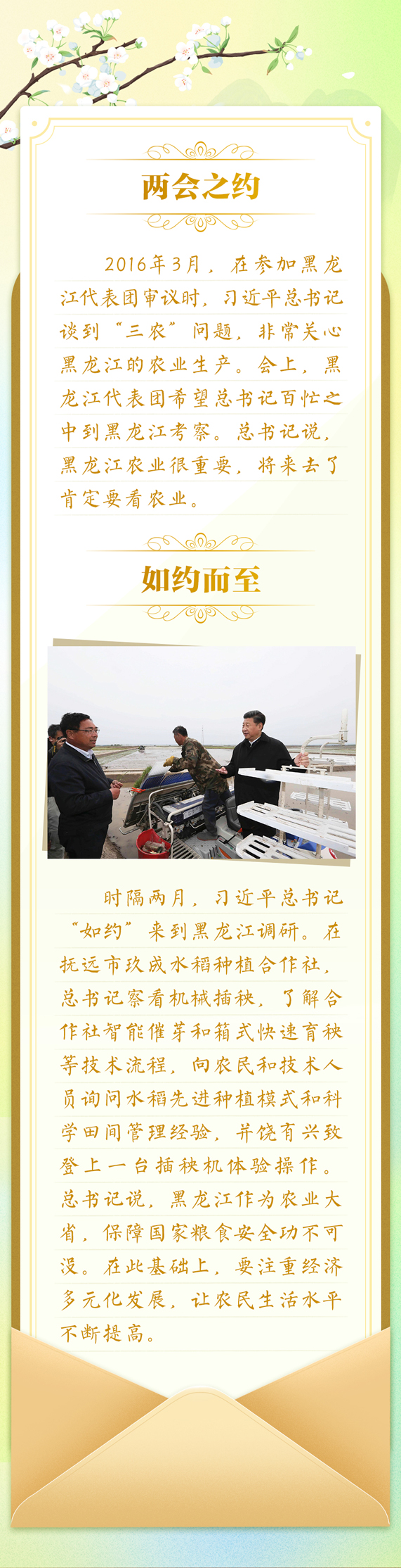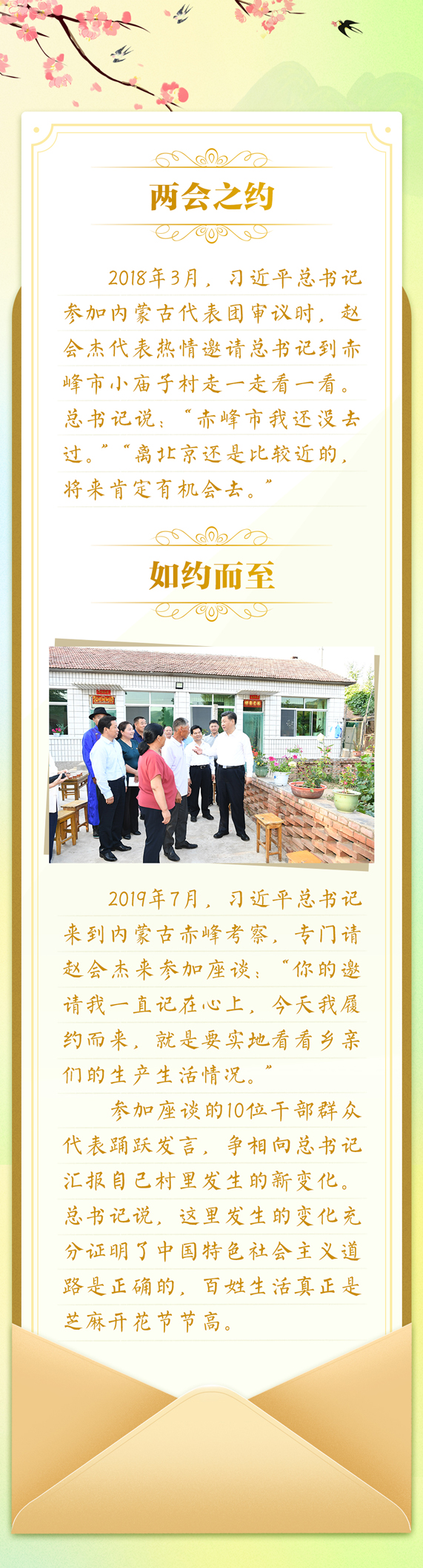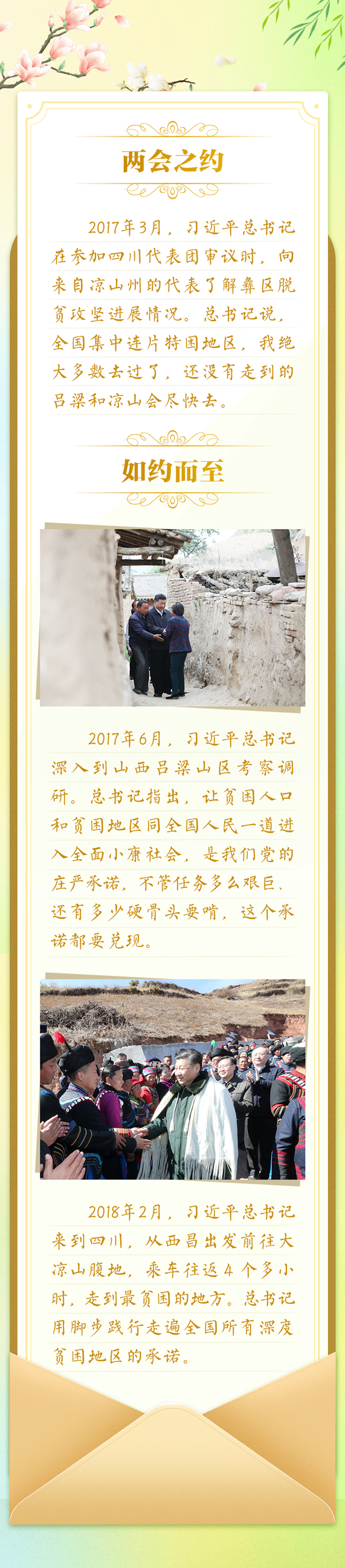 全国两会上,习近平总书记参加代表团审议时,许多代表会向总书记发出邀请:希望总书记到他们的家乡看一看,给他们更多指导。“大家的‘请柬’我都收下了,有机会一定去。”无论是代表的邀约,还是对人民的承诺,都是真情流露,心心相印。