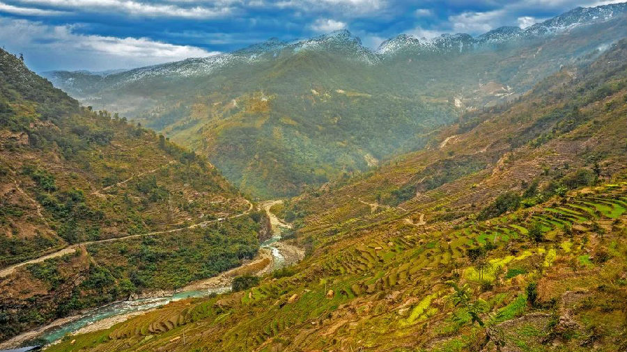 尼泊尔中百太克水电站所在的玻特科西河冰雪消融