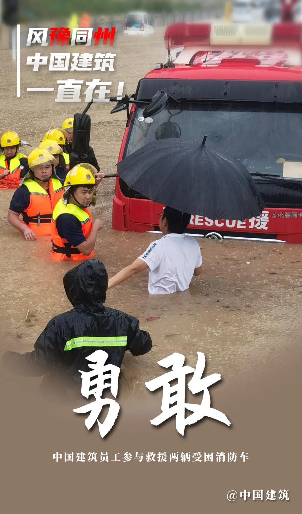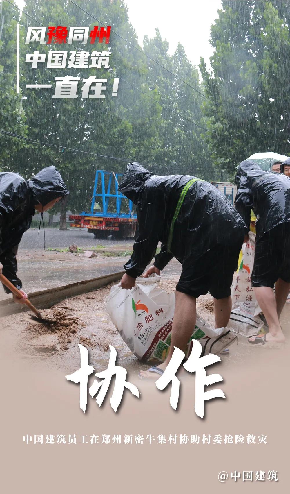 中国建筑紧急部署、迅速行动,第一时间启动最高等级应急预案,集团在豫各子企业在稳定自身汛情的同时,密切配合地方指挥部署,把确保人民群众生命财产安全放在第一位,发挥自身专业特长和资源优势,提供救援物资,勇担救援重任,协助当地妥善转移安置受灾群众,帮助维护水库堤坝、抢修桥梁道路、疏通河道沟渠......全面开展防汛救灾工作。