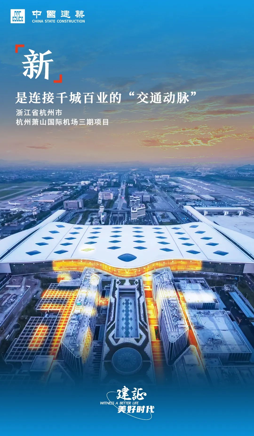 杭州萧山国际机场三期项目总建筑面积约150万平方米,主要包括新建T4航站楼、交通中心、高铁站、区域能源中心、配套市政工程等。项目是保障杭州亚运会的重要交通基础设施项目、浙江省大通道建设十大标志性项目之一,项目投运后对浙江省高质量发展、推进共同富裕先行和省域现代化先行具有重要意义。