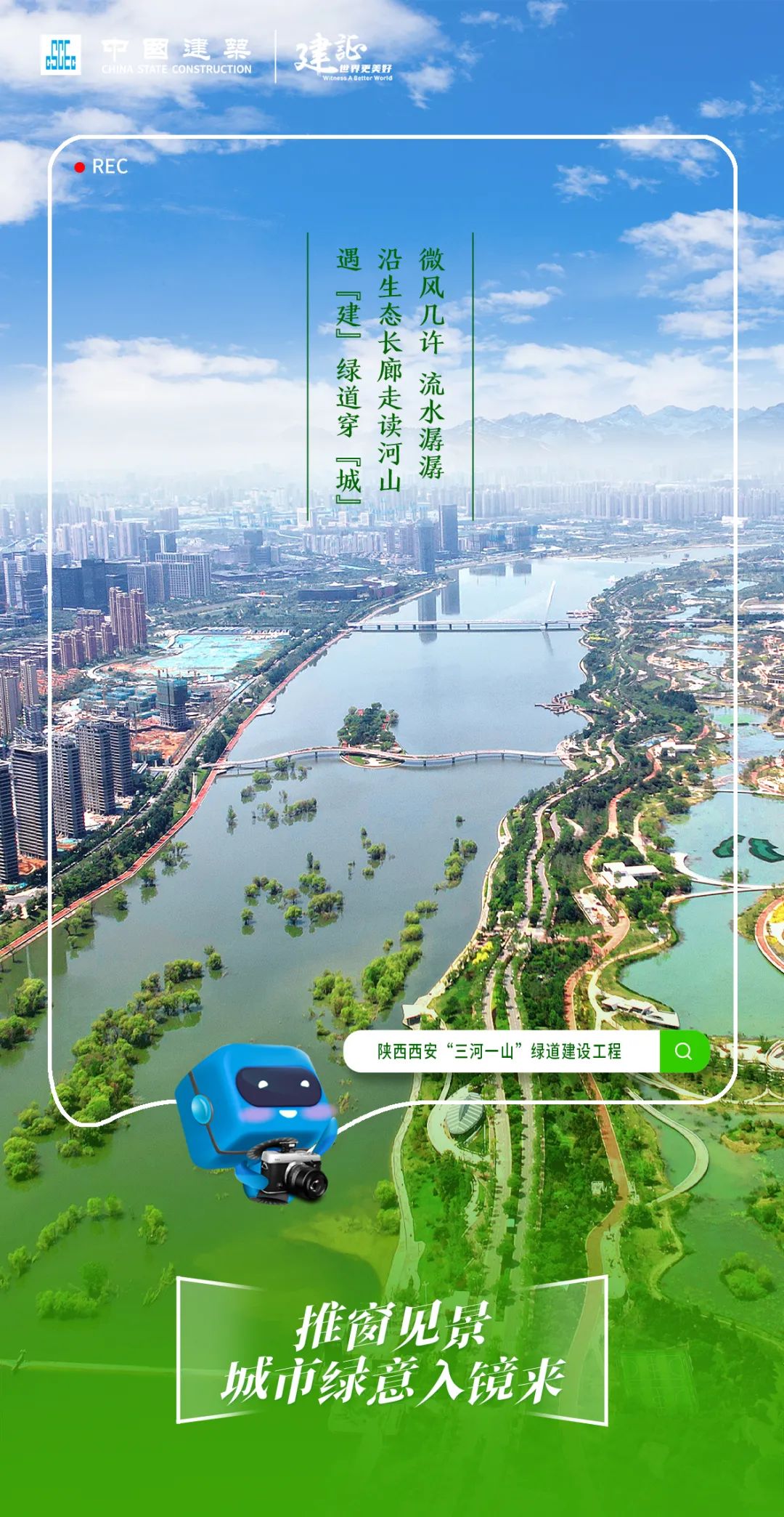陕西西安“三河一山”绿道建设工程由中国建筑旗下中建丝路(西北区域总部)投资建设运营,中建二局、中建三局、中建四局承建,项目将进一步巩固和提升浐河、灞河水生态环境质量和品质,串联山与水,惠及城与人,打造“生态+文旅”,绘就城市绿色发展的诗意长卷。