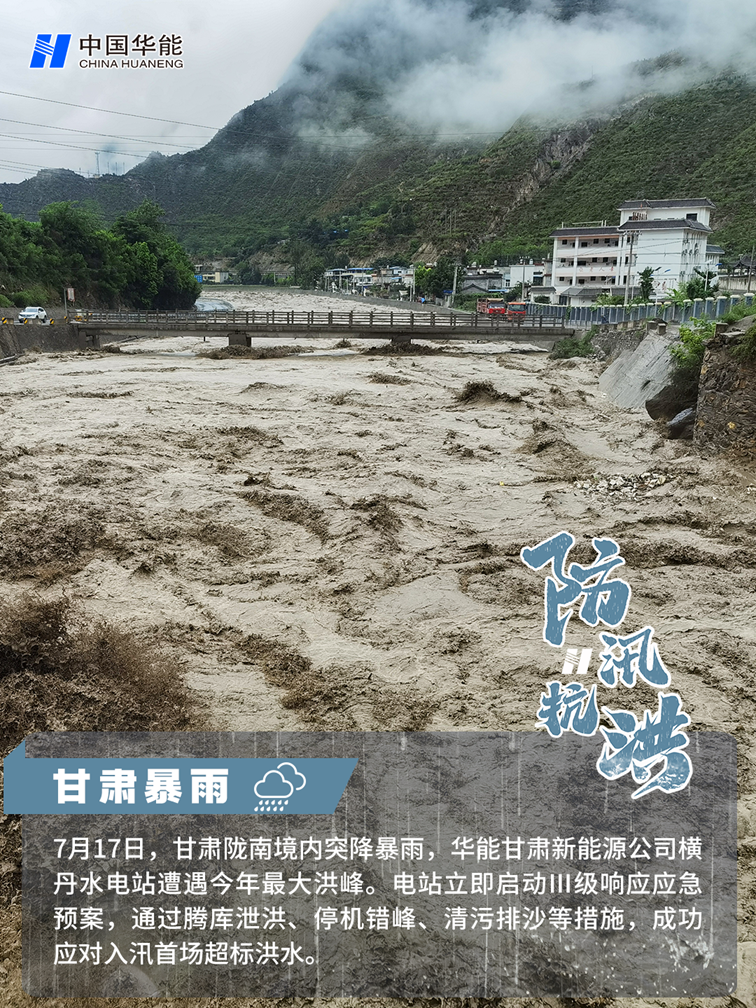 近日,河南、甘肃、山东、四川等地遭遇强降雨天气,防汛形势异常严峻。面对极端恶劣天气,中国华能迅速吹响战“汛”集结号,各单位严阵以待,加强24小时值班值守和设备巡查,抓好隐患排查、物资储备等各项防汛工作,确保机组安全稳定运行,全力以赴筑牢能源保供“安全堤坝” 。