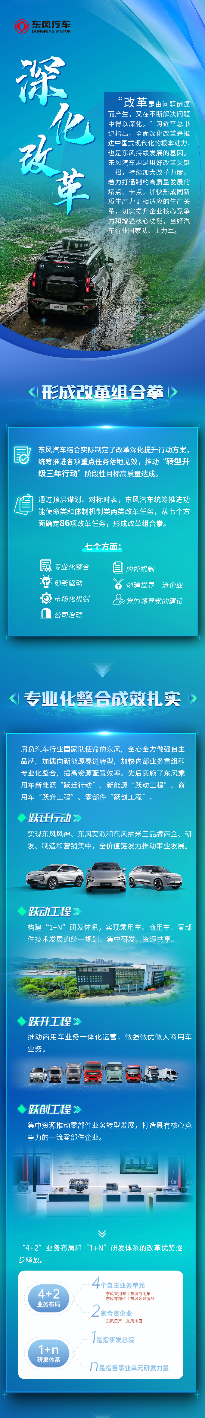 今年1-10月,东风公司新能源车销量达70万辆,同比增长82.3%,改革成效初显。面对汽车行业深刻变革,东风公司深入实施“转型升级三年行动”,持续加大改革力度,向改革要活力要动力,着力打通制约高质量发展的堵点、卡点,加快形成同新质生产力更相适应的生产关系,增强核心功能、提升核心竞争力,当好汽车行业国家队、主力军。