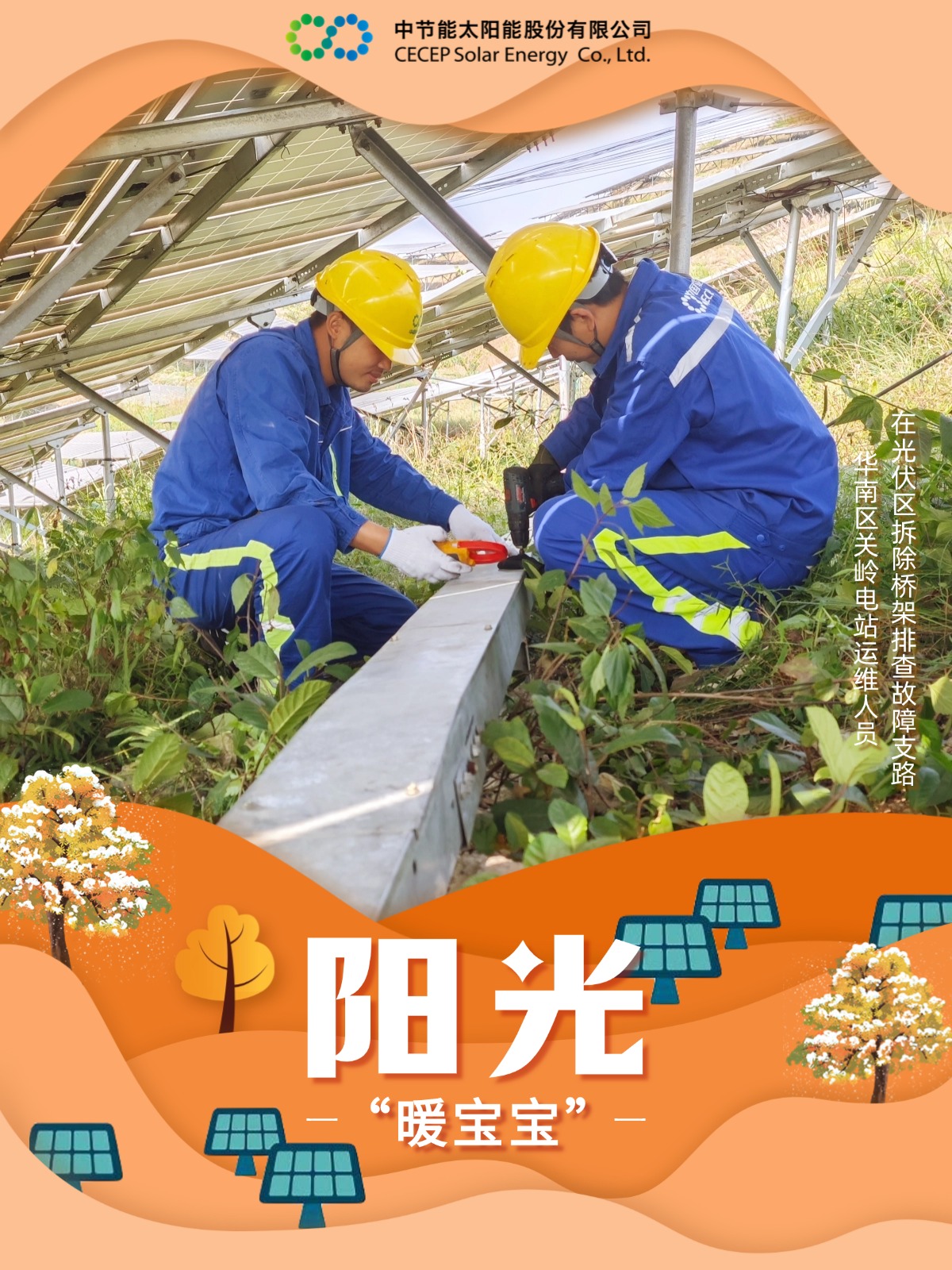 近日,中国节能所属太阳能公司的运维巡检、生产制造队伍宛如冬日里的“暖宝宝”,日夜坚守、持续发热,确保电站的安全稳定运行,保障能源供应,让“温暖”的阳光电流持续流淌,陪伴千家万户度过一个明亮又温暖的冬季。