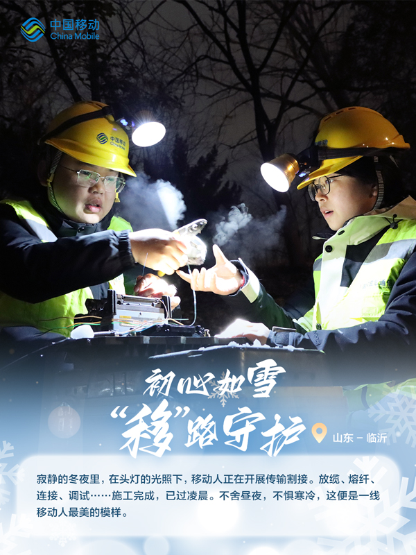近期,我国多地迎来雨雪天气。中国移动工作人员坚守岗位,在网络保障的最前线奋力拼搏,无论是冰天雪地的偏远基站,还是寒风呼啸的城市街巷,都有他们忙碌的身影。秉持着心级服务的理念,他们排查故障、优化线路,毫不懈怠。