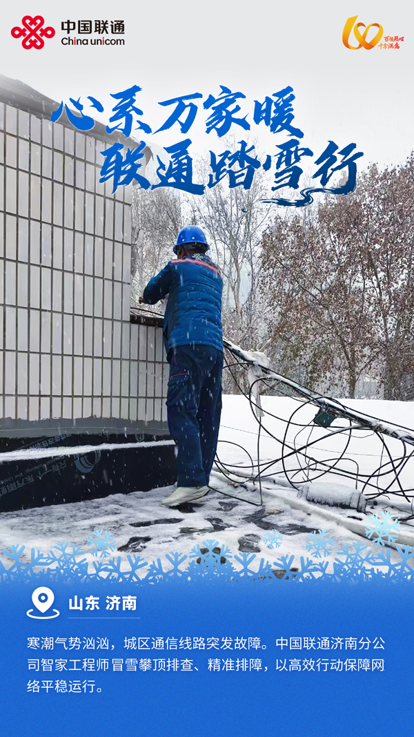 近日,受低温与风雪天气影响,我国多地通信设施面临严峻考验,网络保障压力骤然上升。中国联通一线工作人员登高检修、连夜巡线,保障千家万户通信通畅。