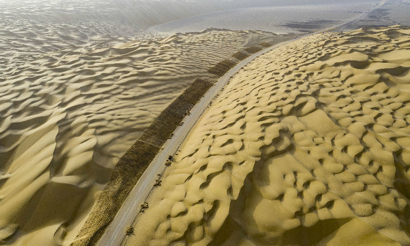 穿越塔克拉玛干沙漠第三条沙漠公路沙基全线贯通