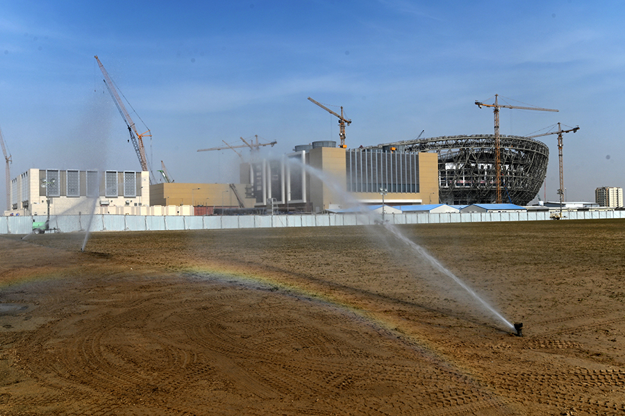 中国铁建承建2022年世界杯主体育场项目完成备草区草坪建植