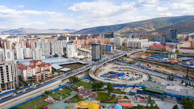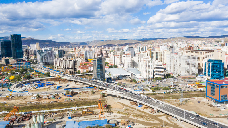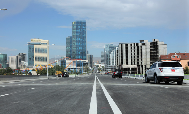 中国企业承建的蒙古国最大互通立交桥主桥通车
