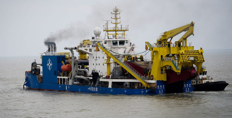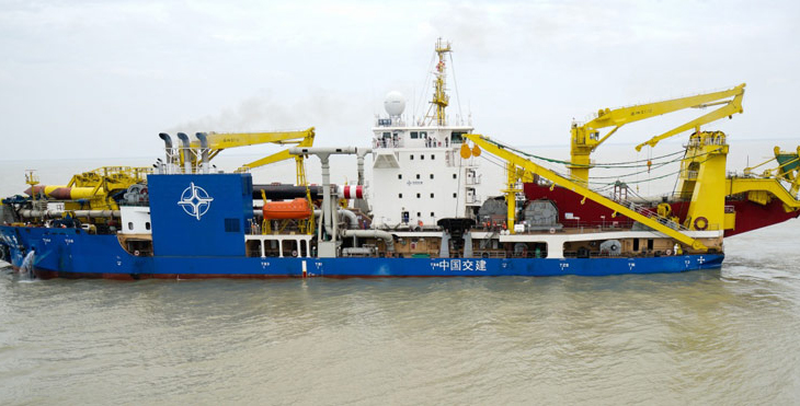 中国自主设计建造重型挖泥船“天鲲号”出港海试