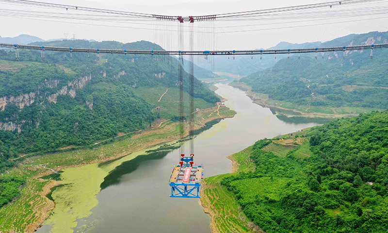 贵州瓮开高速开州湖特大桥开始架设主缆