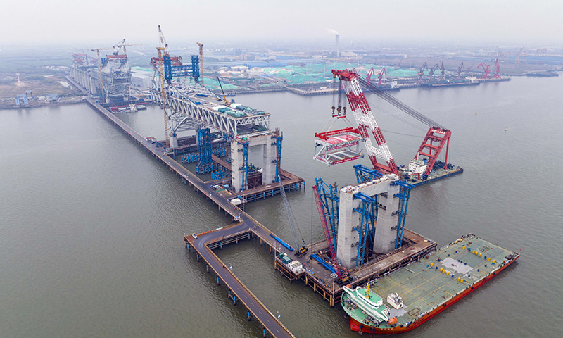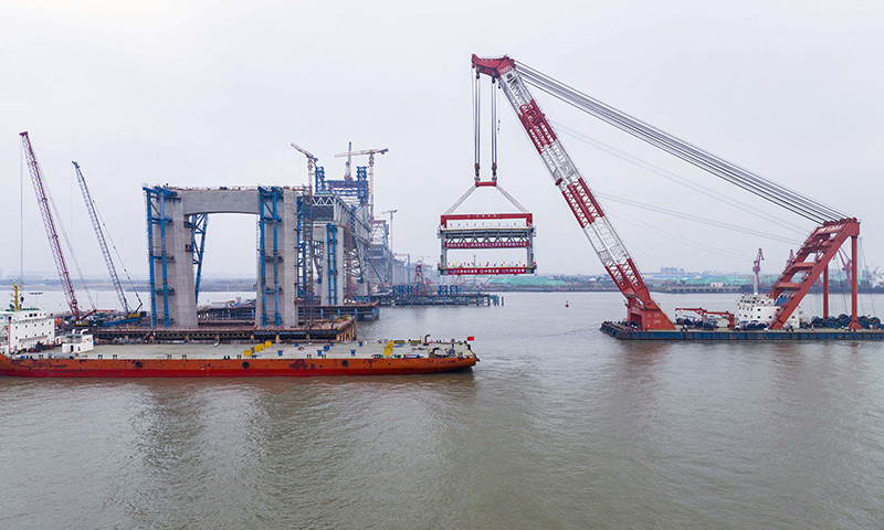 常泰长江大桥主航道桥钢桁梁架设全面展开