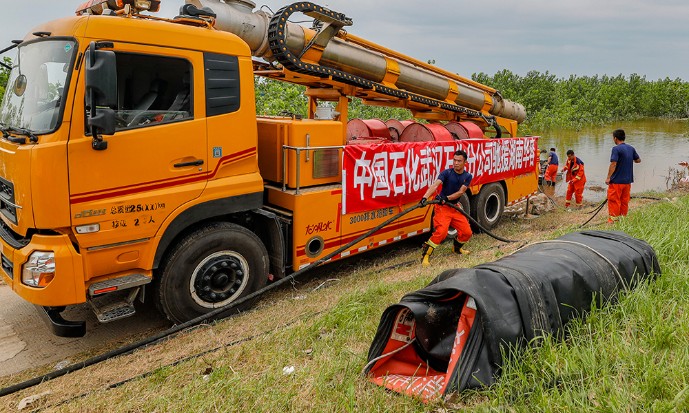 中国石化持续增援湖南华容救援排涝工作