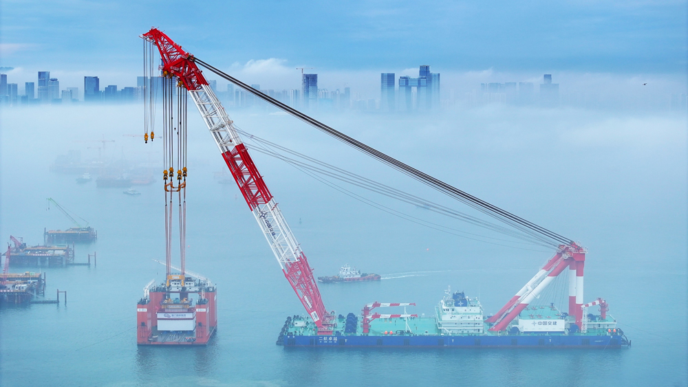 厦金大桥(厦门段)完成首件预制墩台精准出运吊装