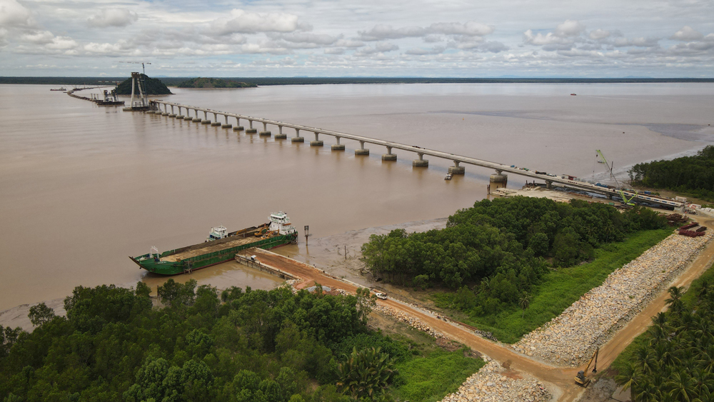 世界最大跨度公路斜拉桥主塔封...