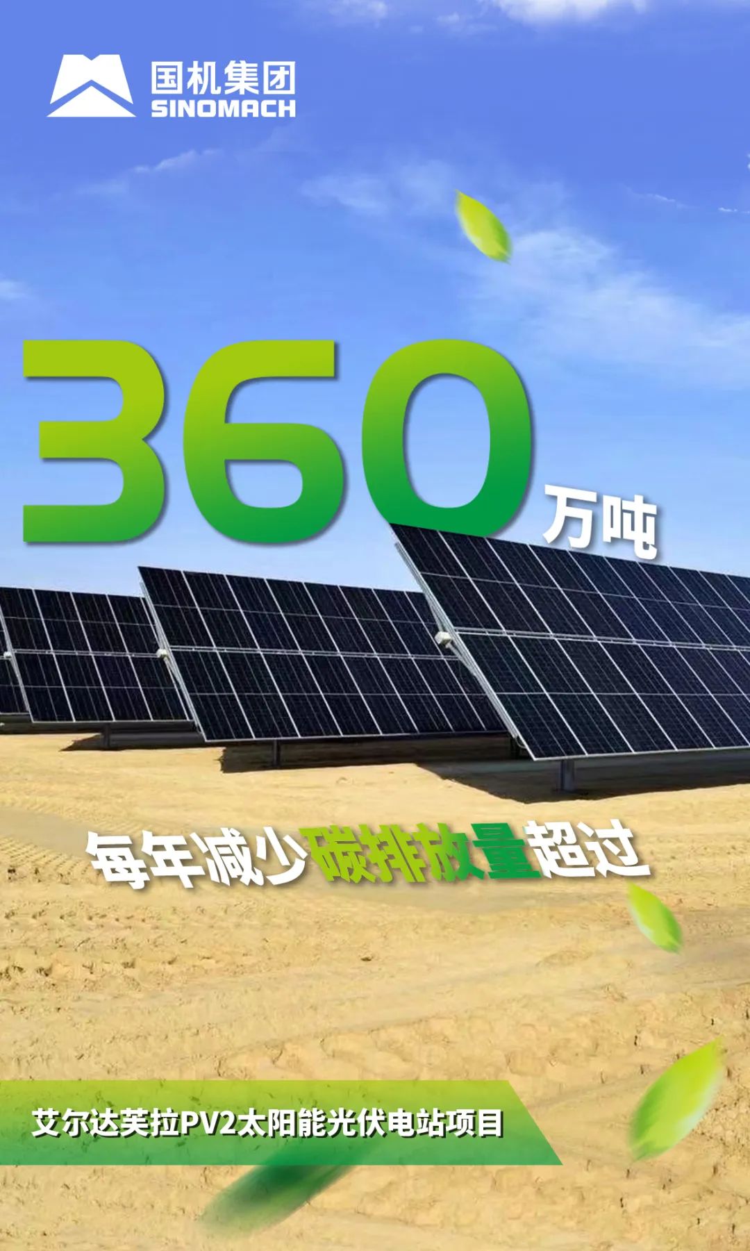 由国机集团中国机械设备工程股份有限公司总承包的艾尔达芙拉PV2太阳能光伏电站项目,是迄今为止全球最大的单体太阳能电站之一,总装机容量2.1吉瓦,建成运营后的发电量可满足约16万户阿联酋家庭的用电需求,每年可以减少超过360万吨的碳排放量(相当于72万辆在路上行驶的汽车排放量)。