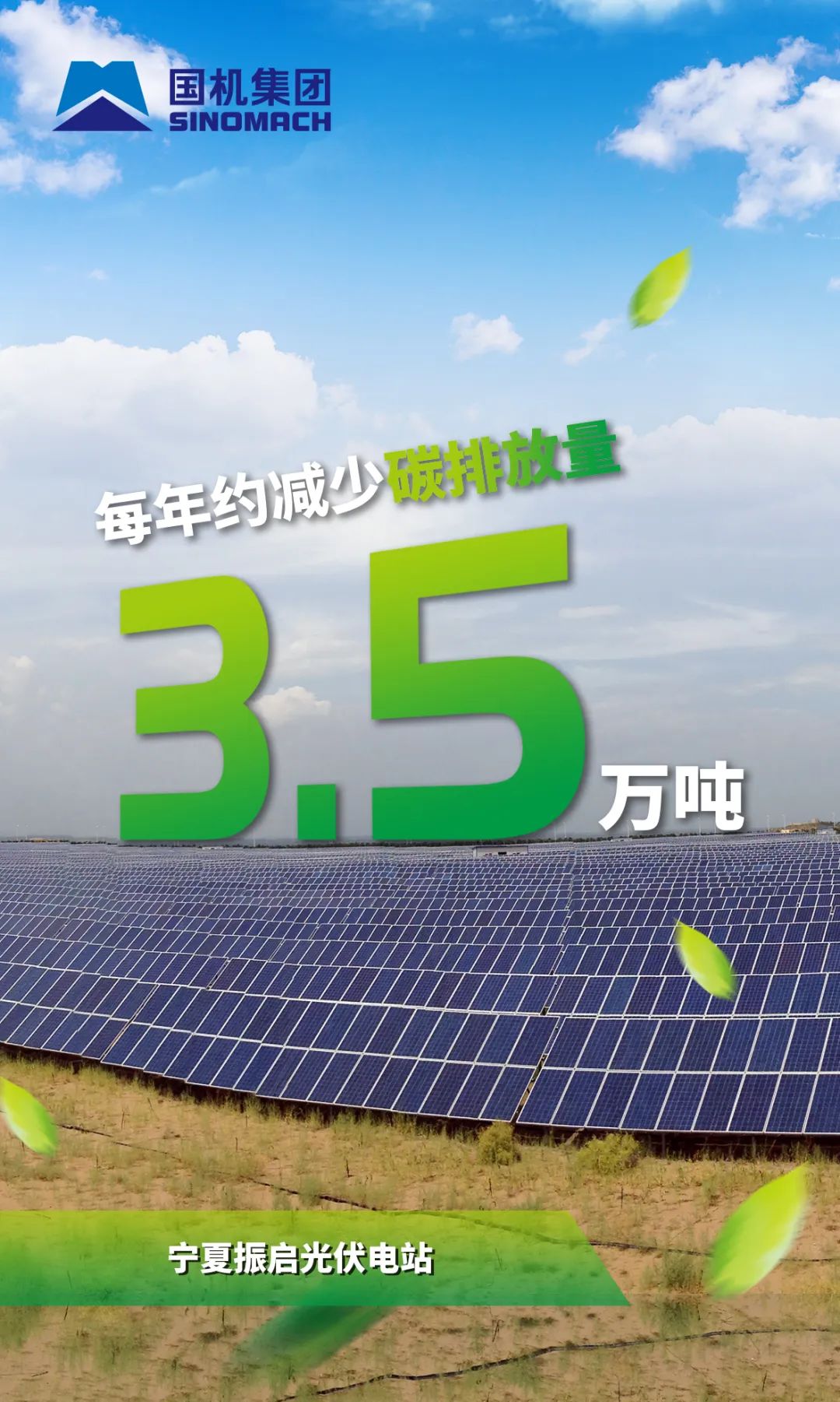 由国机集团下属企业中国福马机械集团有限公司负责建设的宁夏振启光伏电站项目,建设规模为30兆瓦,占地面积935亩,2022年全年输送绿色电能4540.79万千瓦时,约减少1.5万吨标准煤消耗,相当于减少碳排放量3.5万余吨。