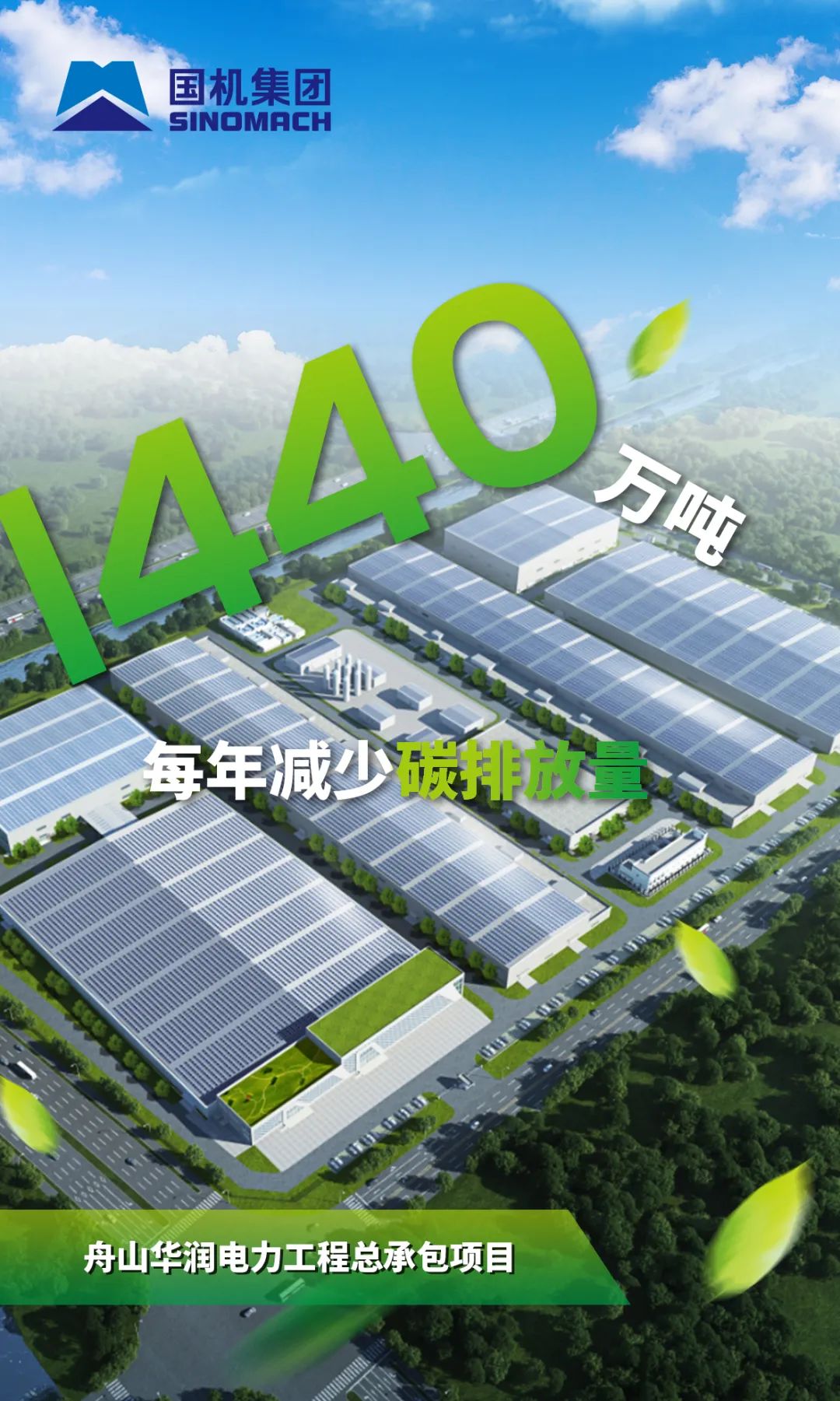 由国机集团下属企业机械工业第六设计研究院有限公司总承包的舟山华润电力工程总承包项目,年产高效异质结太阳能电池(一种新型的高效晶硅太阳能电池,在效率、性能、降碳排放上有着显著优势)12吉瓦,相当于减少碳排放量1440万吨。
