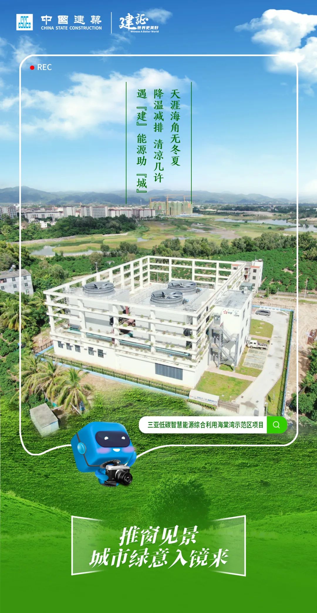海南三亚低碳智慧能源综合利用海棠湾示范区项目由中国建筑旗下中建市政西北院参与设计、中建安装承建,项目(一期)运用智慧能源输送网,向三亚海棠湾区域内的经营性公共建筑集中供应空调冷媒水。项目建成满负荷运行后,海棠湾区域内的能耗将下降10%,节省标煤量约3.26万吨,减少二氧化碳排放8.1万吨,进一步开启三亚“智慧型区域能源”之路。