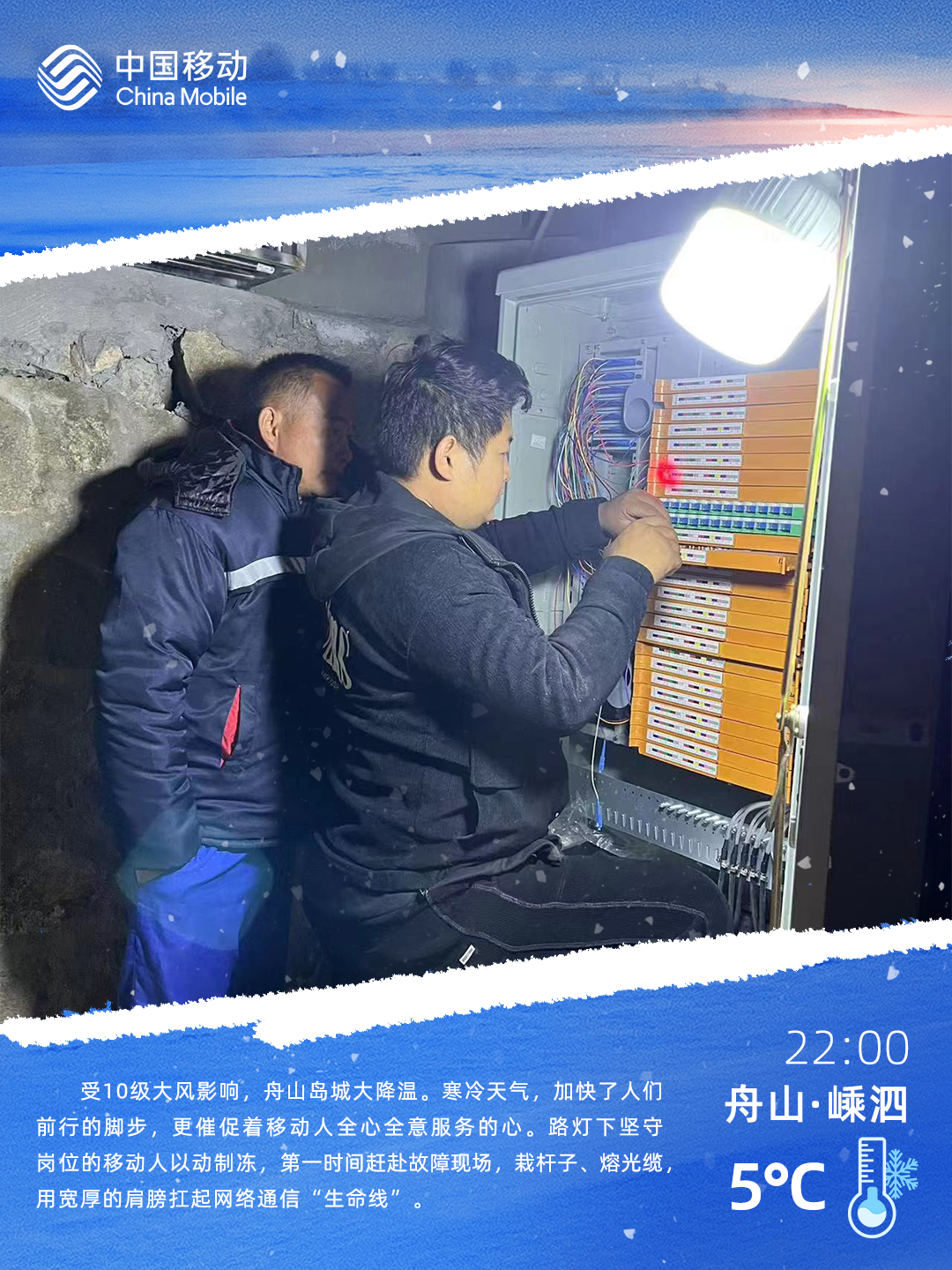 当城市灯火逐盏亮起,中国移动一线工作人员仍坚守岗位,他们穿梭于大街小巷,哪里需要宽带安装,哪里就有他们的身影,哪里需要网络抢修,他们就奔赴哪里。