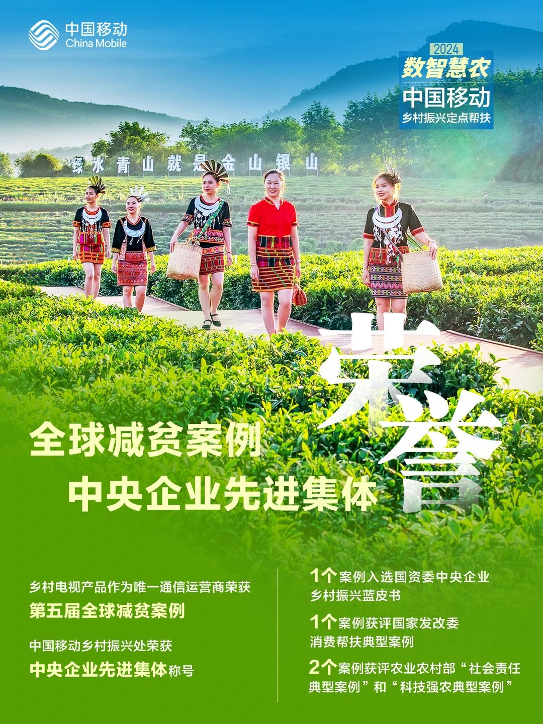 2024年,中国移动锚定建设农业强国目标,深入学习“千万工程”经验,聚焦“两确保 三提升 两强化”核心目标,抓好“规划引领、数智赋能、管理提升”三方面工作,组织机制不断优化完善,帮扶举措更加精准务实,数智赋能持续创新突破,扎实推进巩固拓展脱贫攻坚成果和乡村全面振兴取得积极成效。