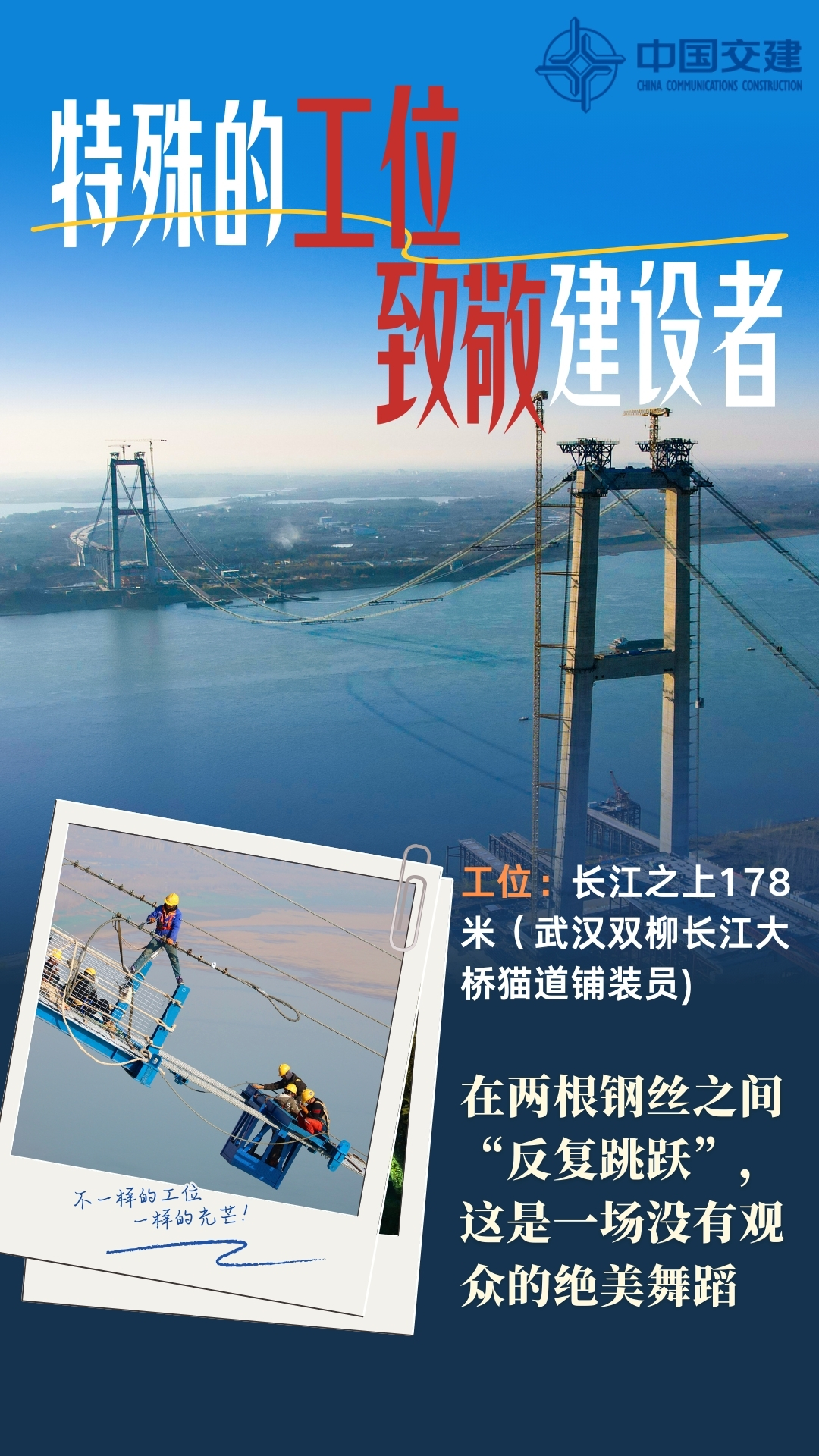 在百米的高空“垂钓”、幽闭的隧洞施工、悬空的钢索“反复跳跃”……每一道严谨认真的工序背后,都有中交集团建设者的身影,他们用极强的专业技能和坚韧的工作态度,完成不可思议的挑战,为项目建设贡献力量。