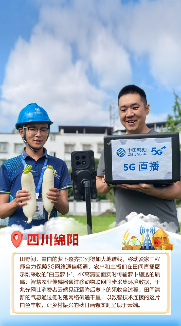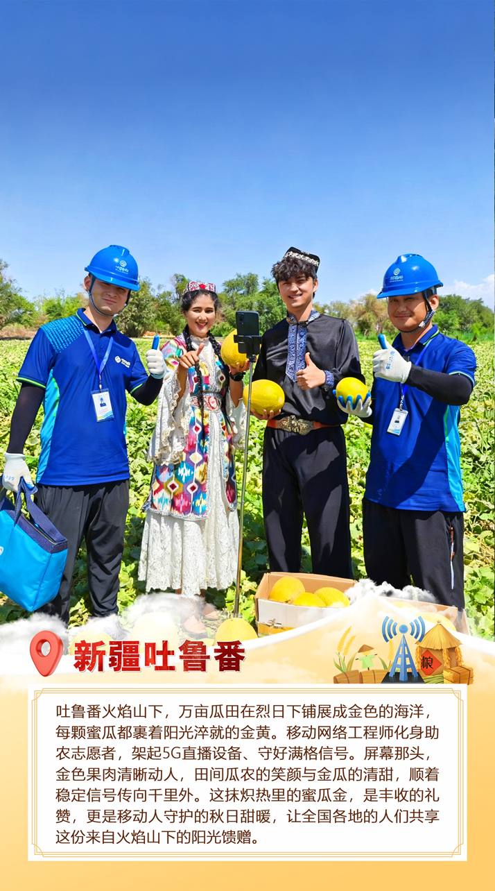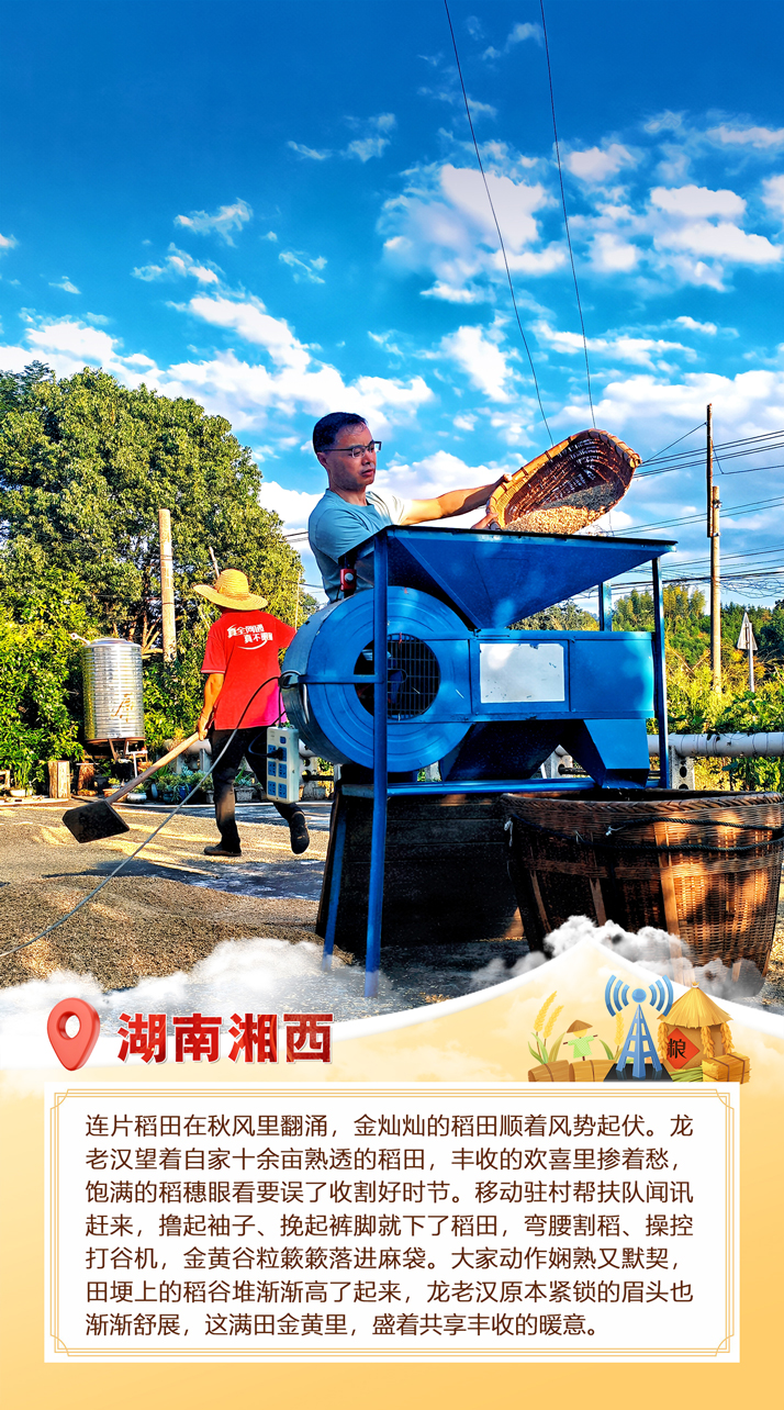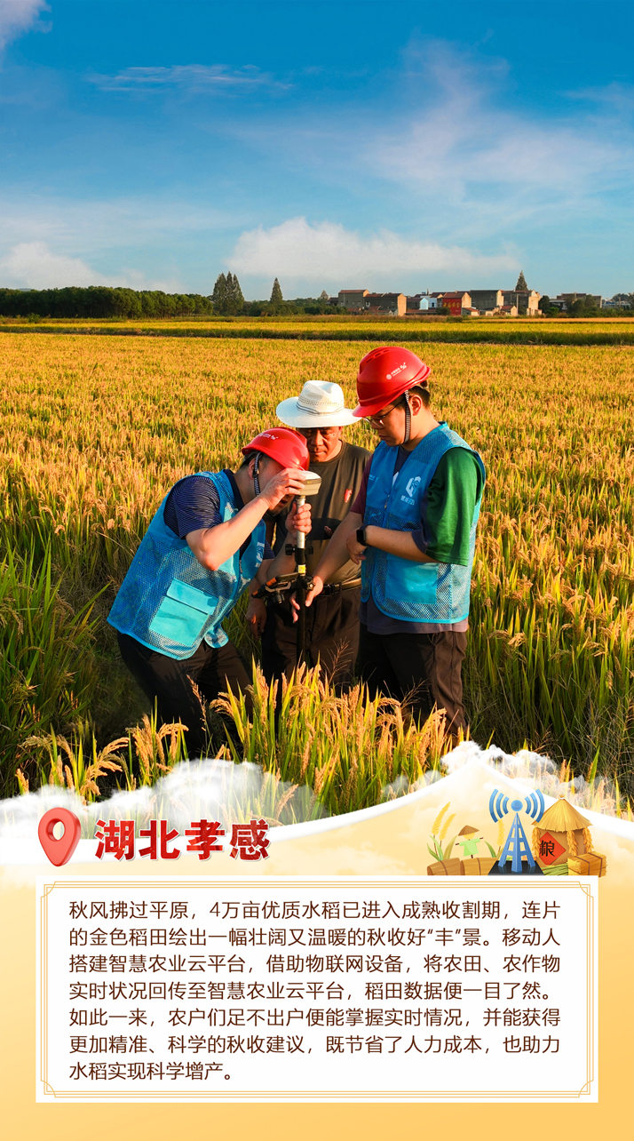 五谷丰登、稻海茫茫、瓜果飘香、蟹肥菊黄……这些五彩斑斓的绝美“丰”景,在我国广袤大地上徐徐展开,丰收和笑容背后藏着中国移动工作人员默默守护的身影。