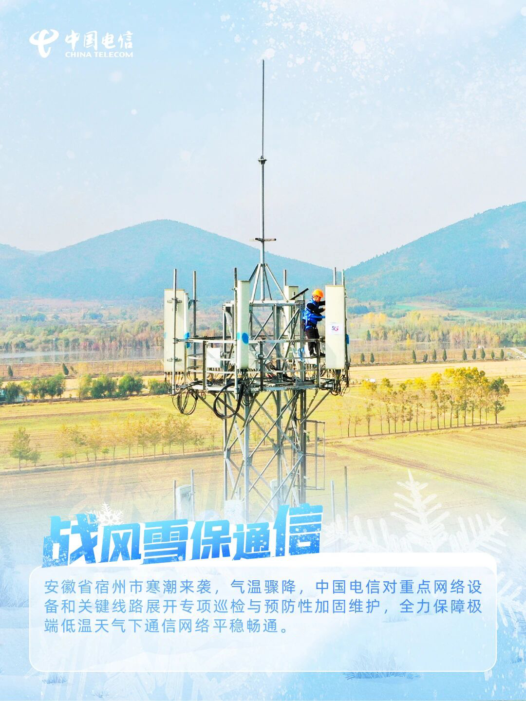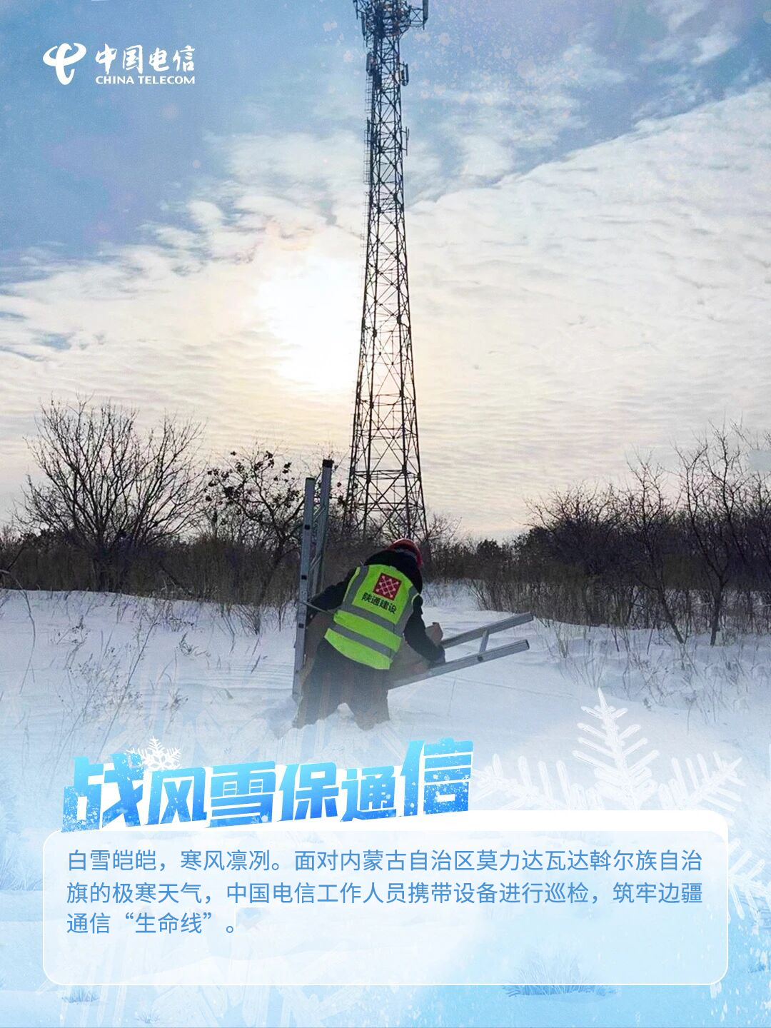 近日,我国多地迎来寒潮天气,纷纷开启 “冰封模式”。中国电信一线工作人员顶风冒雪,全力排查通信线路隐患,保障千家万户通信畅通。