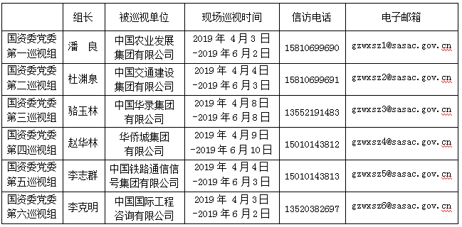 国资委党委2019年第一轮巡视进驻一览表