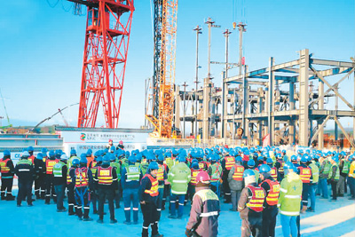 2月10日,胡努特鲁燃煤电厂项目举行防疫期间安全施工会。国家电投供图