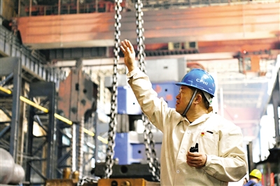 中国一重首席技能大师刘伯鸣在车间作业。