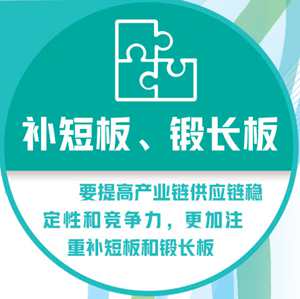 “要提高产业链供应链稳定性和竞争力,更加注重补短板和锻长板”,这是中央首次提出“锻长板”。从字面上看,“补短板”,就是把中国经济在产业链上的弱项补上来,“锻长板”则是通过优化营商环境、强化政策支持等举措,把一部分具有较好基础的产业环节转化为中国经济的发展优势。