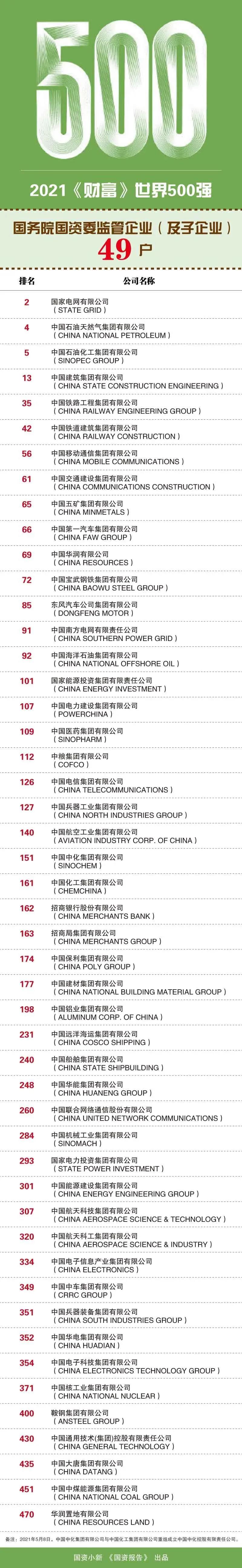 北京时间2021年8月2日,《财富》官方APP发布了最新的《财富》世界500强排行榜。中国大陆(含香港)上榜公司数量连续第二年居首,达到135家,比上一年增加11家。加上中国台湾地区企业,中国共有143家公司上榜。