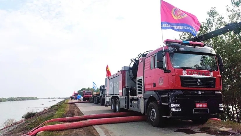 7月8日22时,湖南省岳阳市华容县团洲垸大堤决口封堵完成,抗洪救灾取得阶段性胜利。与此同时,团洲垸内滞留有约2.1亿立方米水量,威胁人民生命财产安全的险情仍未解除。国家防办、应急管理部组织部署,从多省份调派排涝力量实施跨省区增援,执行积水排涝任务。