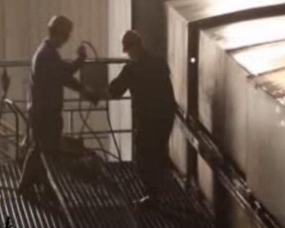 辛圣东(右一)给车间的探伤工做技术培训