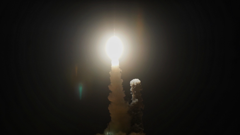 火箭发射过后留下一抹“祥云”。郎文海 摄